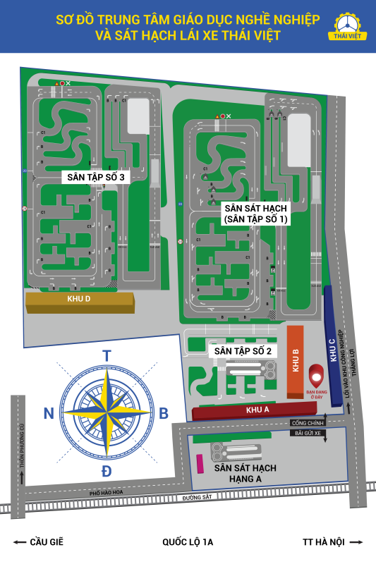 - Sở hữu 42.395m² sân, cho phép học viên học và thi ngay trên sân.